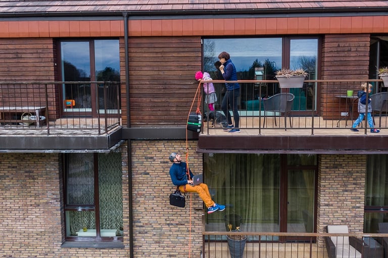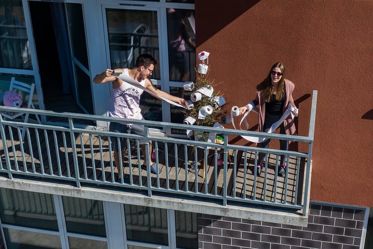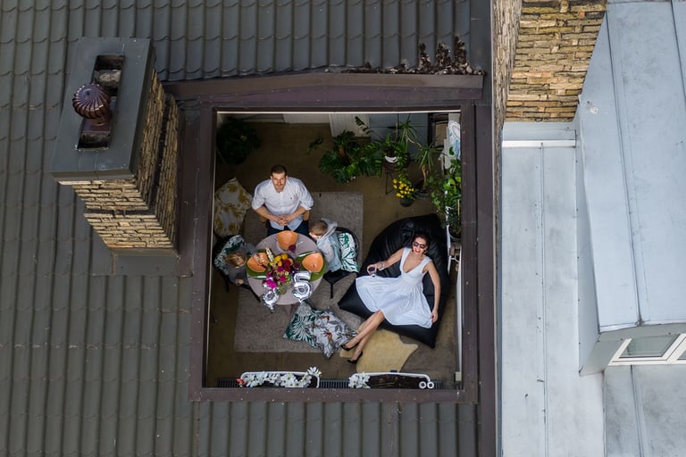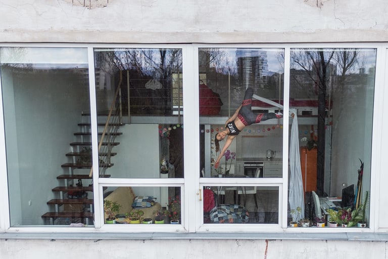 In 2020 when covid took over the world I grabbed my drone and photographed people in their homes through their windows, balconies and on their terraces. It’s a 100% zero-human-contact way to see how people were going crazy during quarantine times.